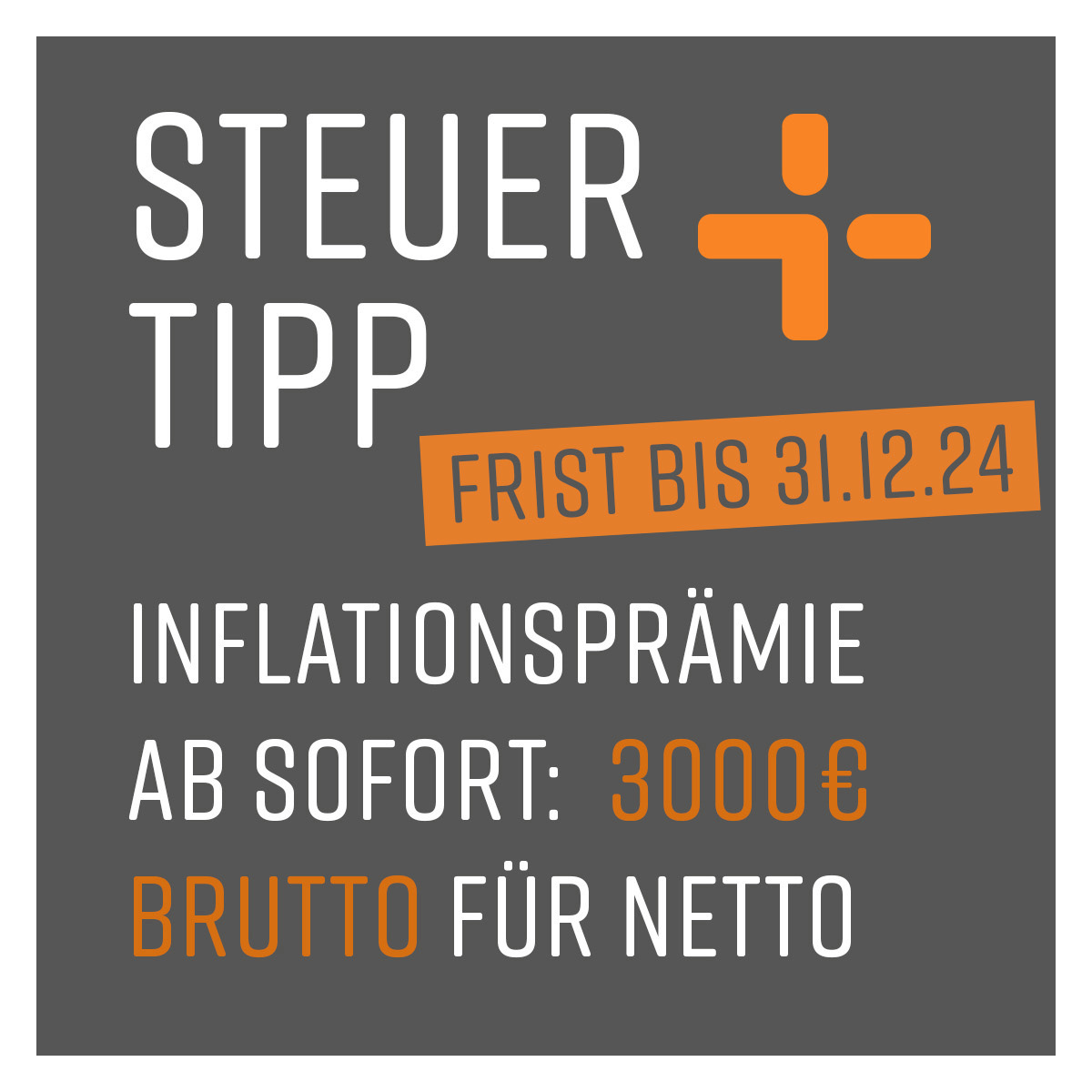 Steuertipp: Inflationsprämie — noch bis zum 31.12.2024 bekommst du als Arbeitnehmer 3000 € brutto für netto Geschrieben am 30. September 2024. Die bereits vom Bundestag beschlossene Inflationsprämie wurde jetzt im Bundesgesetzblatt verkündet.... Weiterlesen